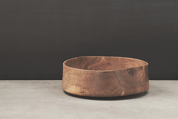 Nassholzschale, sehr dünnwandig gedrechselt aus frisch geschlagenem Nussbaum.